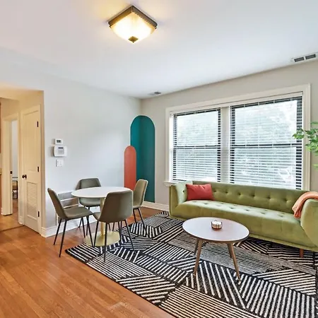 Boasting an adjoining terrace, Designer Apartment 10 Min Walk To Wrigley is appointed with a writing table and provides comforts such as climate control. Within the in-room media amenities, there is Wi-Fi and a TV. The accommodation offers guests the convenient feature of a dryer and towels in the bathroom. A bathtub can also be found.